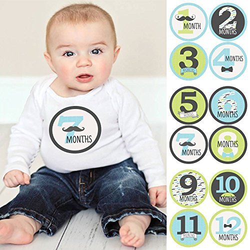 Dashing Little Man Mustache - Baby Boy Monthly Sticker Set - Baby Shower Gift Ideas - 12 Piece [並行輸入品]