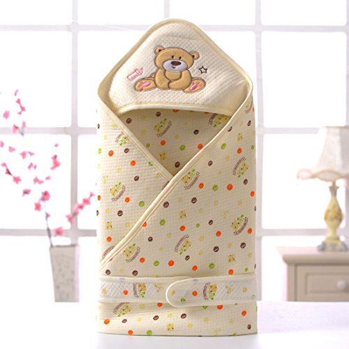 Yuena Care ベビーおくるみ バスタオル おくるみ フード付き パジャマ ブランケット 新生児 ベビー 赤ちゃん オールシーズン 大判 コットン 柔らか 通気 吸汗 保温 出産祝い 熊 イエロー