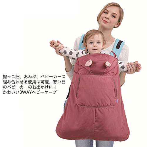 抱っこ紐、おんぶ、ベビーカーに組み合わせる使用は可能、寒い日のベビーカーのお出かけに!かわいい3WAYベビーケープ