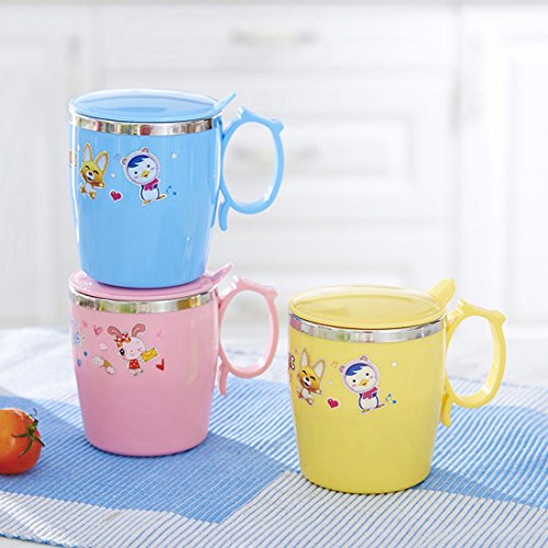 Yuena Care カップ コップ 保温カップ 保冷カップ ステンレス 真空断熱 取っ手付き 子供用 保温 保冷 蓋付き ブルー