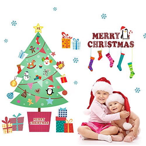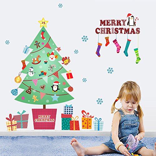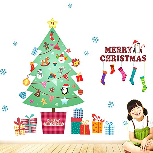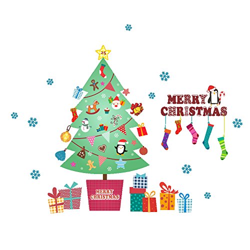 Yunt ウォールステッカー クリスマス 壁ステッカー メリー クリスマス クリスマスツリー クリスマスプレゼント 子供の部屋装飾 壁ステッカー 雑貨 DIY 模様替え サンタ クロース トナカイ ツリー