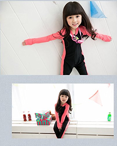 【ノーブランド品】 子供用 フィットネス 競泳用 子供用ウエットスーツ・ラッシュガード 水着 日焼け止め UVカット 長袖サーフィンスーツ 連体 キッズ用 男女兼用 (2XL, ピンク)