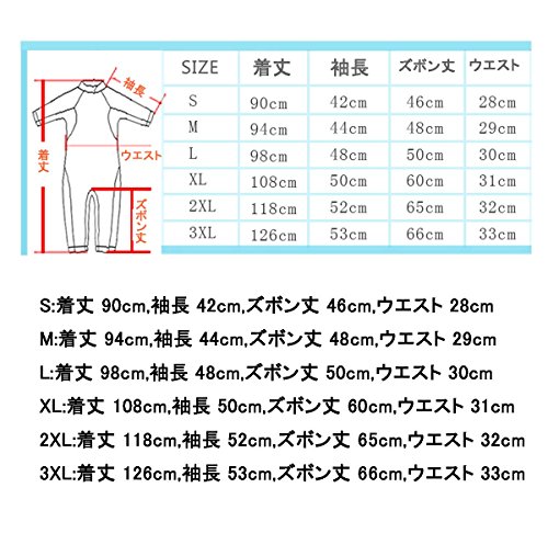 3XL:着丈 126cm,袖長 53cm,ズボン丈 66cm,ウエスト 33cm