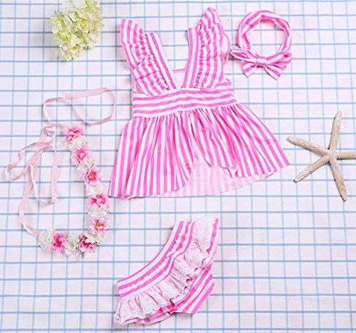 【YusonGirl】キッズ 水着 女の子 ジュニア セパレート 3点セット (XL, ピンク)