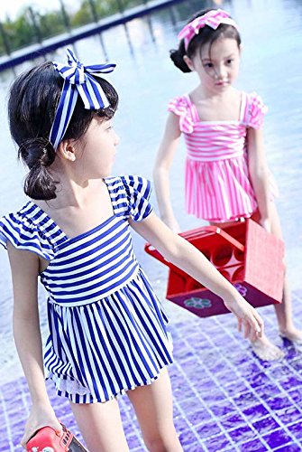 キッズ 水着 女の子 ジュニア セパレート 3点セット フリル レース付きパンツ ヘアバンド リボン付き ボーダー柄 子供用 こども 女児 90cm 95cm 100 110 120 130
