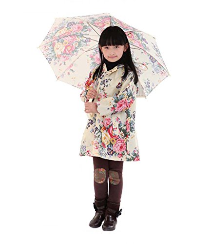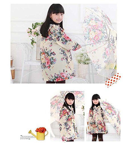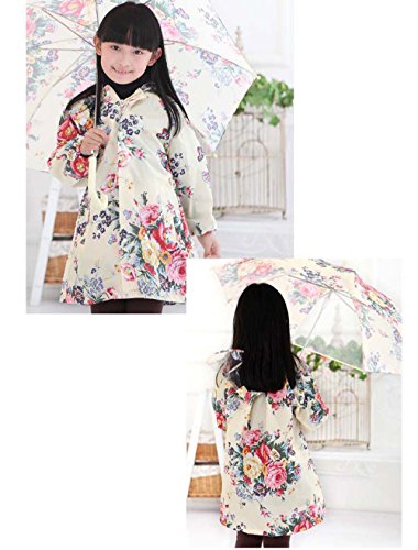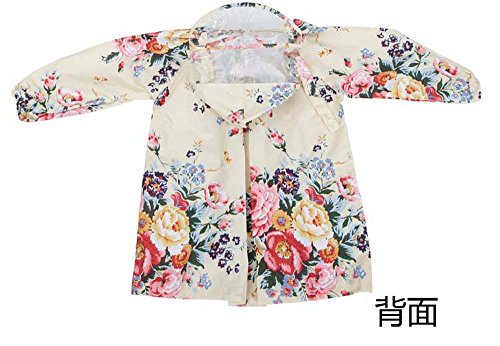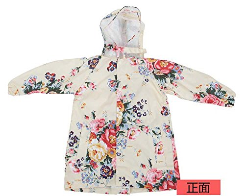YusonGirl 子供用花柄のレインコート かわいい キッズ レインコート 学生 ベージュフラワー レインウェア ポンチョ かっぱ 子供 用 (2XL)