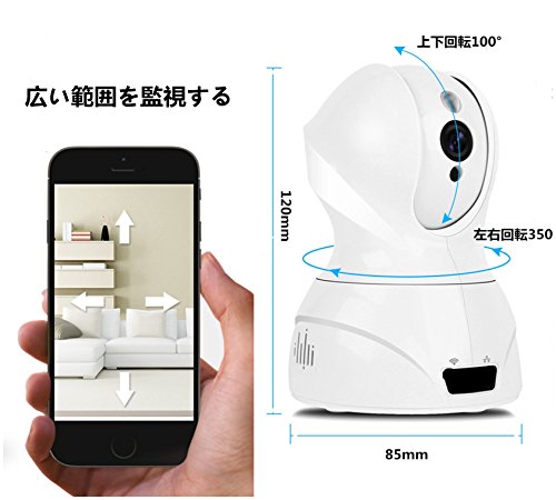 - 1. 新型の首振り式のスマートなIPカメラです。左右回転350°、上下回転100°の範囲でレンズの向きを操作できるし、広い範囲の監視することができます。