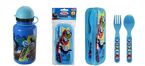 Thomas the Train 12 oz Water Bottle and Flatware Spoon and Fork Go Pack with Case Set by Thomas & Friends