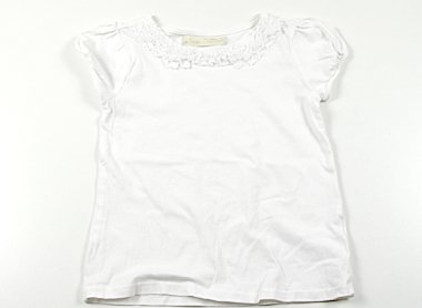 薄手でとても手触りの良いカットソーです。やや使用感がありますが目立った汚れはありません。衿ぐりフリルはシフォンです。
