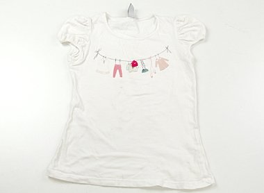 女の子らしいデザインのTシャツです。いくつかのシミがあります。外遊びや洗い替え用にいかがでしょうか?