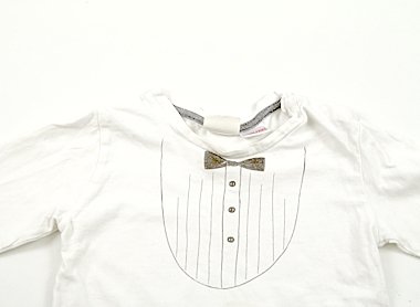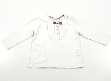 - 実際のサイズ表記は12-16monthsです。衿元、袖、前身ごろ中央に黄色いシミがあります。ブランドタグが一部切れています。