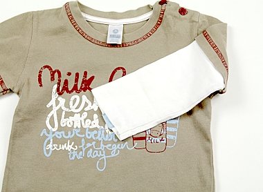 ブランドネーム読みにくいですが品質タグにザラジャパンの記載あり。実際のサイズ表記は18-24m・80/86です。若干色褪せ・袖の白い部分に薄いシミがありますが型崩れはなくまだまだ活躍してくれそうです。