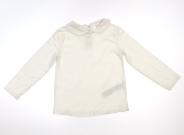 - 実際のサイズ表記は2~3yeas/98cmです。カットソー素材に襟がついたデザインです。首の後ろには着脱用にスナップボタンが一つついております。使用感がありますが、綺麗な状態です。まだまだ普段着として活躍してくれそうです。