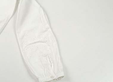 - 実際の表示サイズは7~8years,128cmとあります。前と左腕後ろ部分に小さなシミがありますが小さく、薄いため目立ちません。フリルがついておりとてもお洒落な商品です。