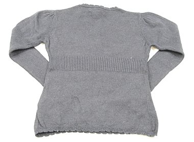 実際のサイズ表記は104cm・3-4です。エレガントなハイゲージニット。やや使用感がありますが目立つシミや汚れは見当たらずまだまだ活躍してくれそうです。