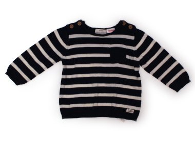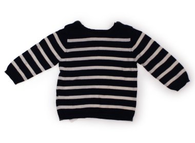 - 実際のサイズ表記は6-9m、74cmです。薄手のニットです。色褪せや毛羽立ち、左肩後ろ下に3ミリほどのピンク色の汚れがありますが、まだまだ普段着として活躍してくれそうです。