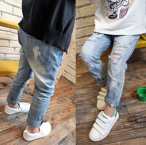 Baby Girl Boys Ripped Jeans Kids Boy Friendスタイルデニムパンツ カラー: ブルー