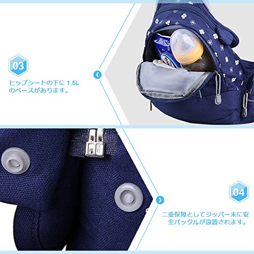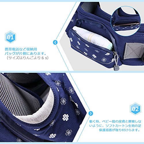 - サイドポケットが付き:ヒップシートの下に1.5Lのペースがあります。赤ちゃんの哺乳瓶、おしゃぶり、スナック、財布、キーまたは携帯電話など収納できます。