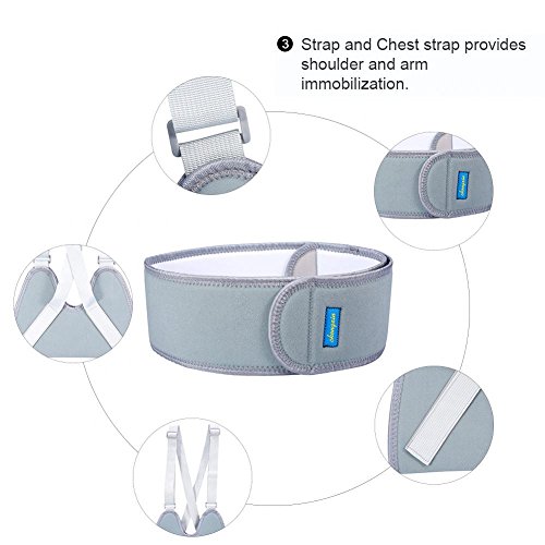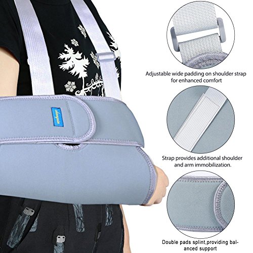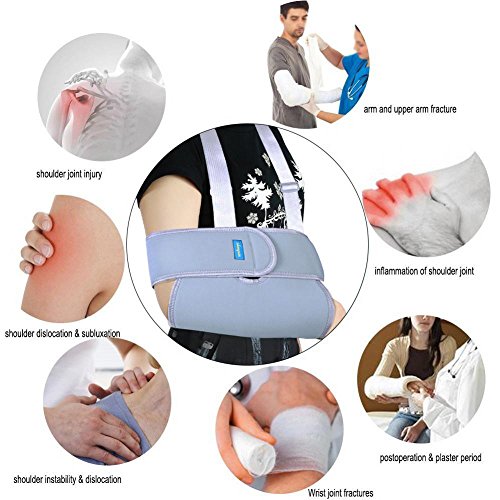 - 快適感:首の所にビロードで作られたクッション付き、とても柔らかいので、肩に負担を掛けてなく、快適な装着感を与えてくれて長時間使用しても疲れません。怪我の後に肩を固定しながら快適なサポートを提供します。肩の挫傷やひずみ、肩の脱臼、頭の下の上腕骨の骨折の安定性である大人のためのフィットです。