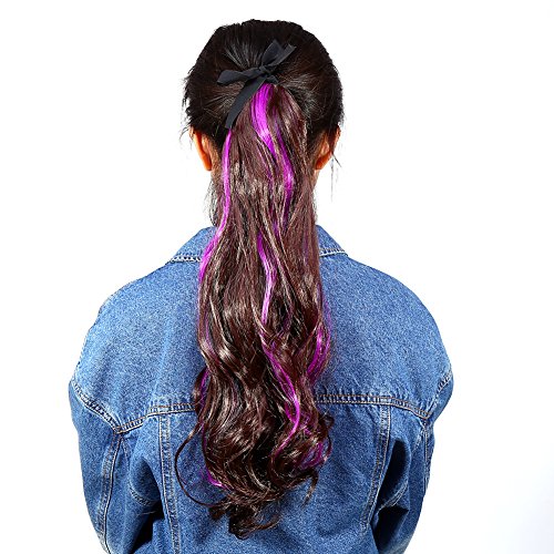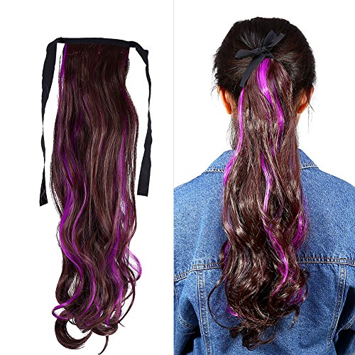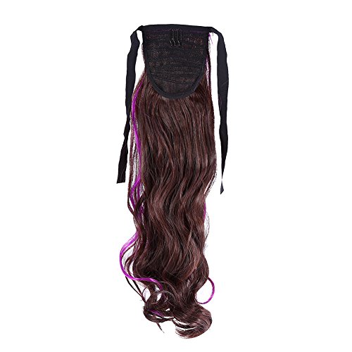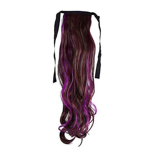 ポニーテールヘアピース、レディースウィッグ8色新婦の合成繊維ヘアバンドホーステールベルトレディースウェーブハイカラーヘッドドレス(玫紫)