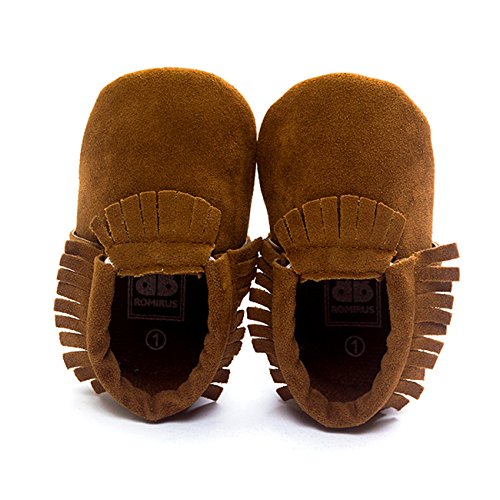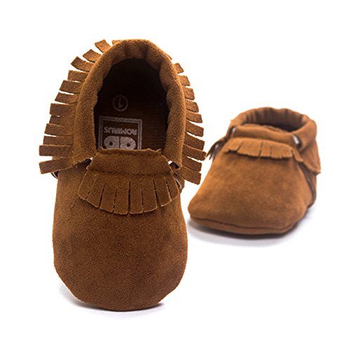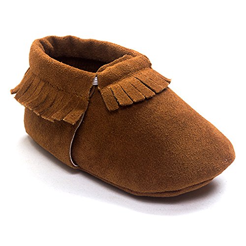 ZOEREA(ゾエレア) ベビーシューズ ソフトソールシューズ 歩行練習シューズ ルームシューズベビー 幼児シューズ 新生児靴 滑り止め 柔らか 出産お祝い 赤ちゃん靴 純色 フリンジ飾り 女の子 男の子 ダックブラウン 13cm