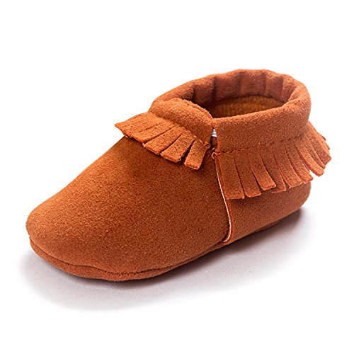 ZOEREA(ゾエレア) ベビーシューズ ソフトソールシューズ 歩行練習シューズ ルームシューズベビー 幼児シューズ 新生児靴 滑り止め 柔らか 出産お祝い 赤ちゃん靴 純色 フリンジ飾り 女の子 男の子 ライトブラウン 11cm