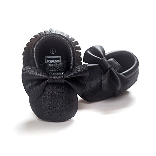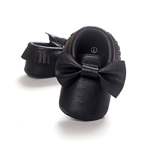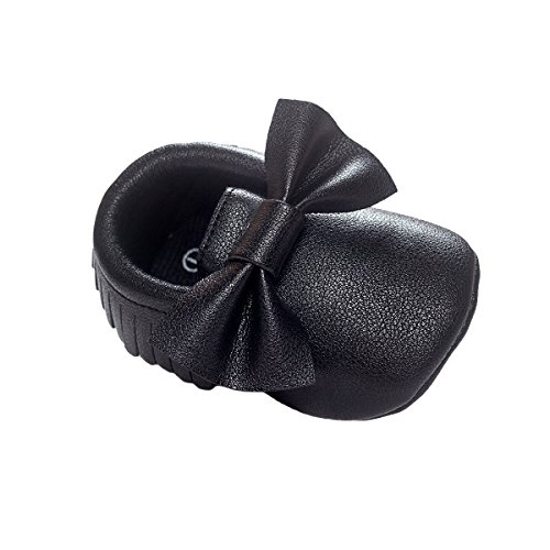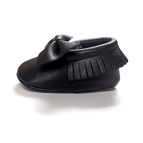 ZOEREA(ゾエレア) ベビーシューズ 歩行練習シューズ ソフトソールシューズ ルームシューズベビー 幼児シューズ 新生児靴 滑り止め 柔らか 出産お祝い PUシューズ フリンジと蝶リボン飾り 女の子 赤ちゃん靴 ブラック13CM