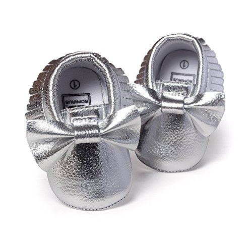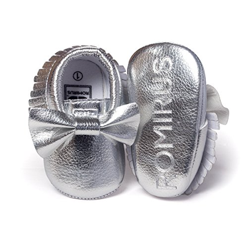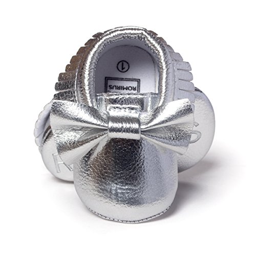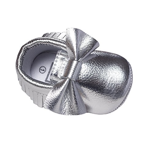 ZOEREA(ゾエレア) ベビーシューズ 歩行練習シューズ ソフトソールシューズ ルームシューズベビー 幼児シューズ 新生児靴 滑り止め 柔らか 出産お祝い PUシューズ フリンジと蝶リボン飾り 女の子 赤ちゃん靴 シルバー 13CM