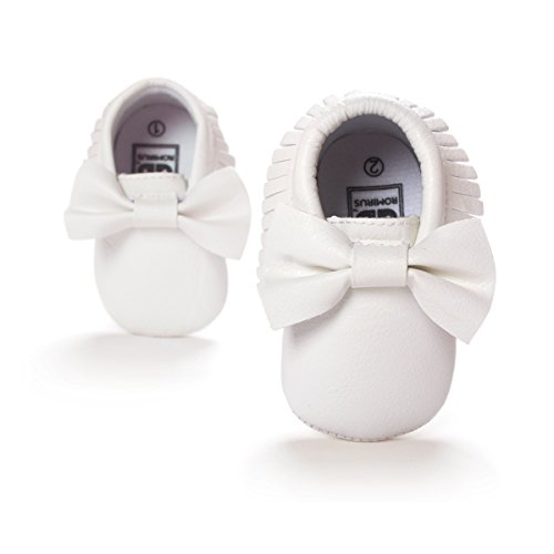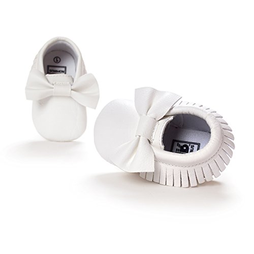ZOEREA(ゾエレア) ベビーシューズ 歩行練習シューズ ソフトソールシューズ ルームシューズベビー 幼児シューズ 新生児靴 滑り止め 柔らか 出産お祝い PUシューズ フリンジと蝶リボン飾り 女の子 赤ちゃん靴 ホウイト13CM