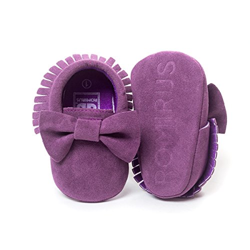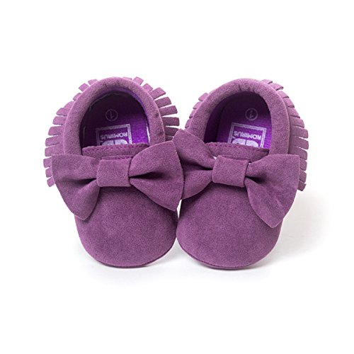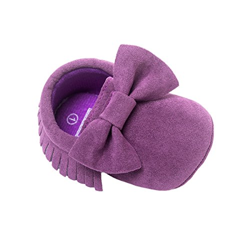 ZOEREA(ゾエレア) 歩行練習シューズ ベビーシューズ ソフトソールシューズ ルームシューズベビー 幼児シューズ 新生児靴 滑り止め 柔らか 出産お祝い フリンジと蝶リボン飾り 女の子 赤ちゃん靴 パープル 11cm