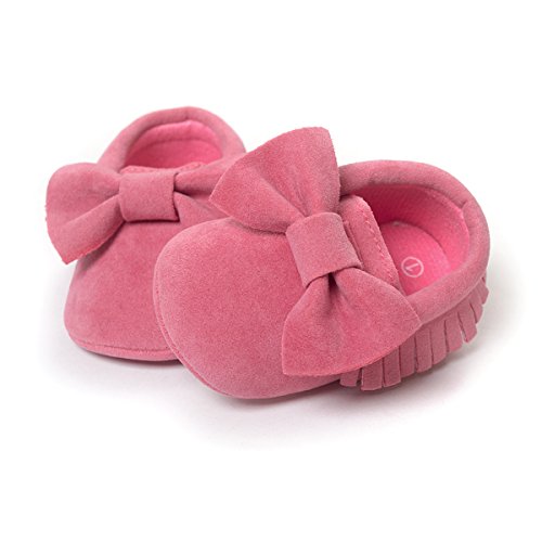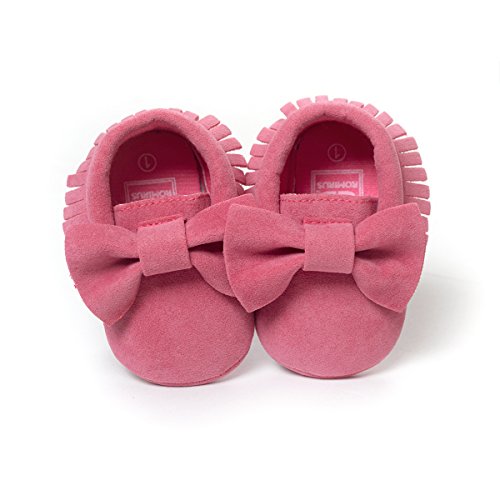ZOEREA(ゾエレア) 歩行練習シューズ ベビーシューズ ソフトソールシューズ ルームシューズベビー 幼児シューズ 新生児靴 滑り止め 柔らか 出産お祝い フリンジと蝶リボン飾り 女の子 赤ちゃん靴 ローズ2 13cm