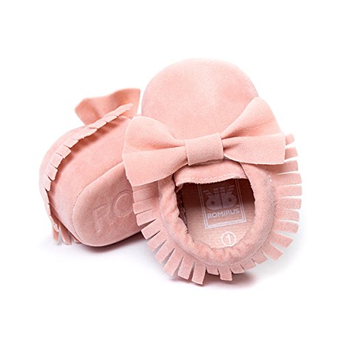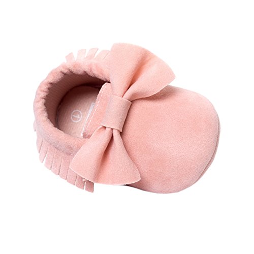 ZOEREA(ゾエレア) 歩行練習シューズ ベビーシューズ ソフトソールシューズ ルームシューズベビー 幼児シューズ 新生児靴 滑り止め 柔らか 出産お祝い フリンジと蝶リボン飾り 女の子 赤ちゃん靴 ピンク 13cm