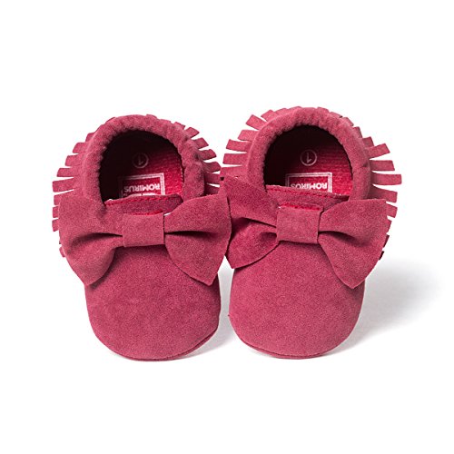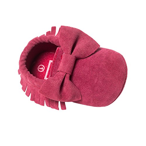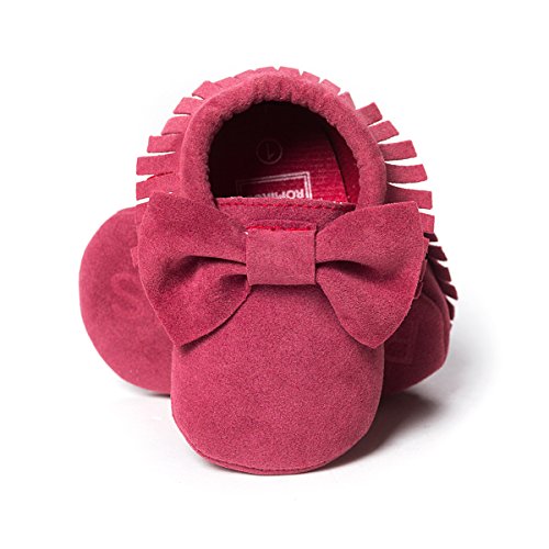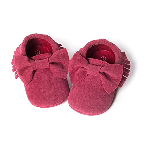 ZOEREA(ゾエレア) 歩行練習シューズ ベビーシューズ ソフトソールシューズ ルームシューズベビー 幼児シューズ 新生児靴 滑り止め 柔らか 出産お祝い フリンジと蝶リボン飾り 女の子 赤ちゃん靴 ローズ 13cm