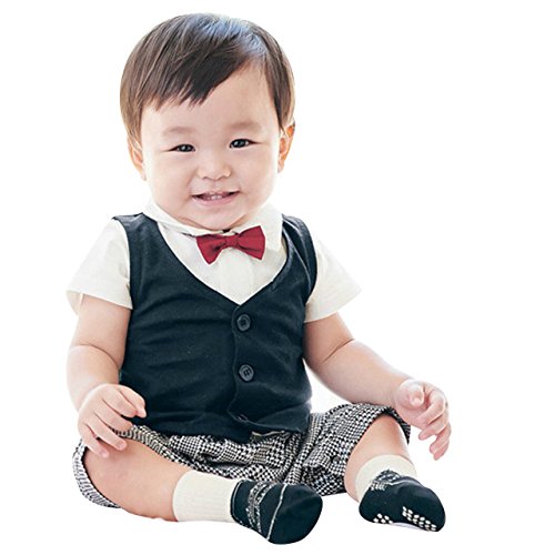 ZOEREA(ゾエレア) ベビースーツ フォーマル ロンパース 半袖 子供服 新生児 ネクタイ付き 綿 写真撮影 発表会 卒園式 入学式 卒業式 入園式 七五三 お食い初め 結婚式 プレゼント 出産祝い サイズ70 80 90 95