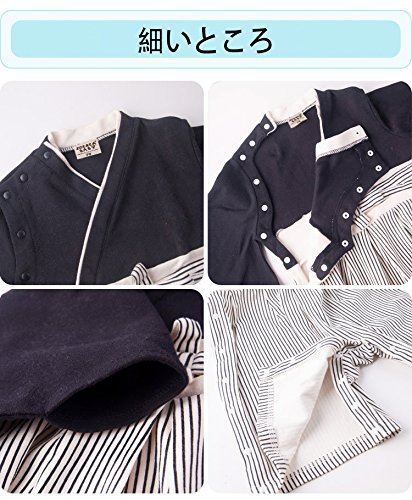 - 袴はズボンタイプで、ボタンの前開きで足の下まで開けれるので、おむつ着替えがとっても楽チンです♪。カッコ良く気軽に着れるのでおススメです