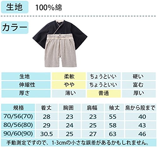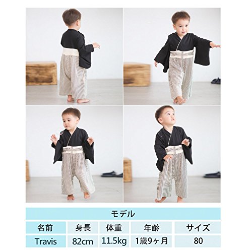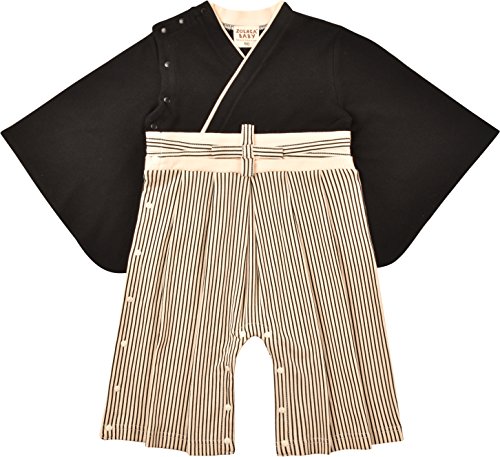ZOEREA(ゾエレア) 男の子 着物 初節句 お正月 お宮参り 七五三 結婚式 出産祝い ベビーロンパース カバーオール キッズ 袴 男の子 和装 フォーマル 春秋着 ブラック 80