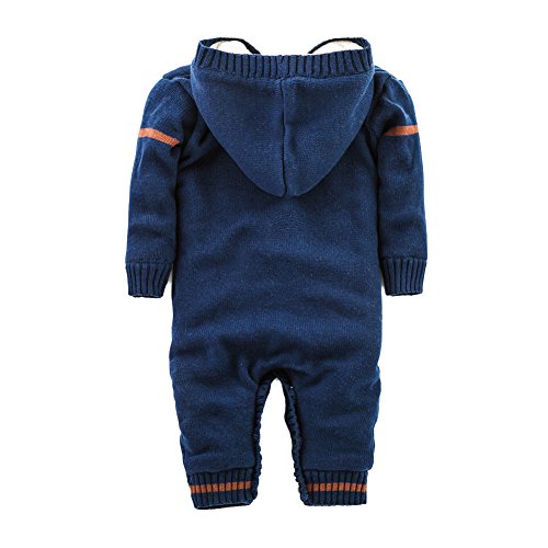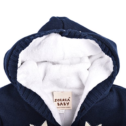 ZOEREA(ゾエレア) ベビー長袖ロンパース セーター子供 フード付き ニットセーターキッズ 女の子 男の子 厚い カバーオール ベビー ニットジャケット 七五三 誕生日 結婚式 記念日 出産祝い 秋冬 子供服 ダックブルー 18ヶ月