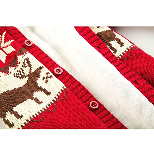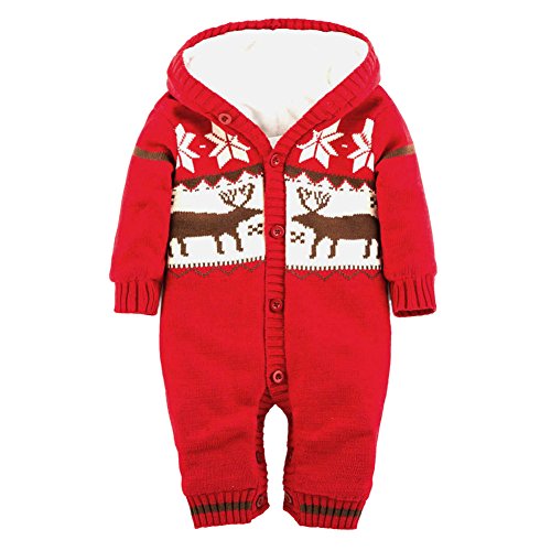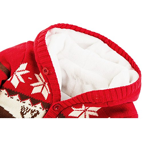ZOEREA(ゾエレア) ベビー長袖ロンパース セーター子供 フード付き ニットセーターキッズ 女の子 男の子 厚い カバーオール ベビー ニットジャケット 七五三 誕生日 結婚式 記念日 出産祝い 秋冬 子供服 レッド 2歳