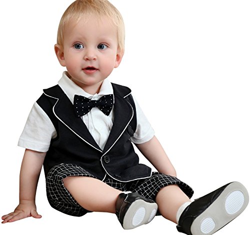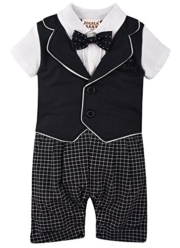 ZOEREA(ゾエレア) ベビースーツ 半袖 蝶ネクタイ付き 95%綿 ロンパース 子供洋服 男の子 フォーマル 幼児 写真撮影 発表会 入学式 入園式 七五三 お食い初め 結婚式 プレゼント 出産祝い 70/80/90/95cm