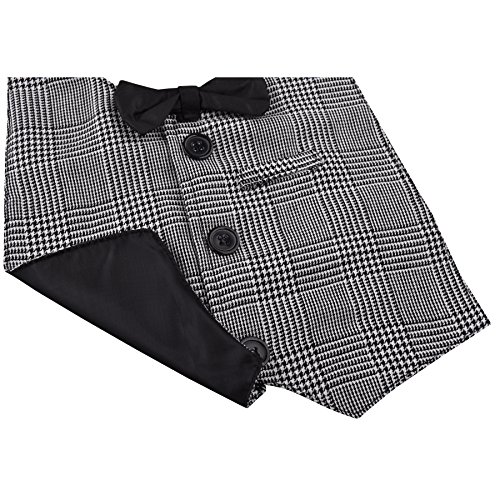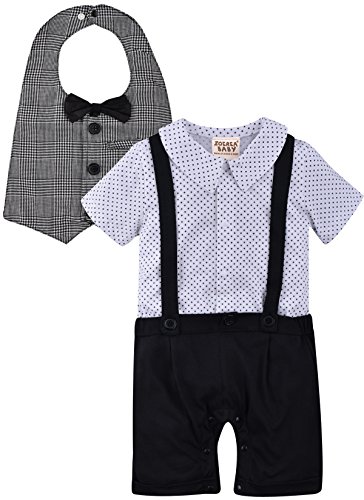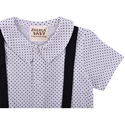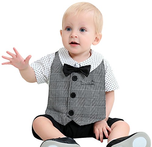 ZOEREA(ゾエレア) フォーマルロンパース 子供洋服 ベビースーツ サスペンダー付きタイプ よだれかけ 2セット 半袖 正装 紳士服 蝶ネクタイ 写真撮影 発表会 卒園式 入学式 卒業式 入園式 七五三 お食い初め 結婚式 プレゼント 出産祝い サイズ70 80 90 95 黒白 千鳥柄