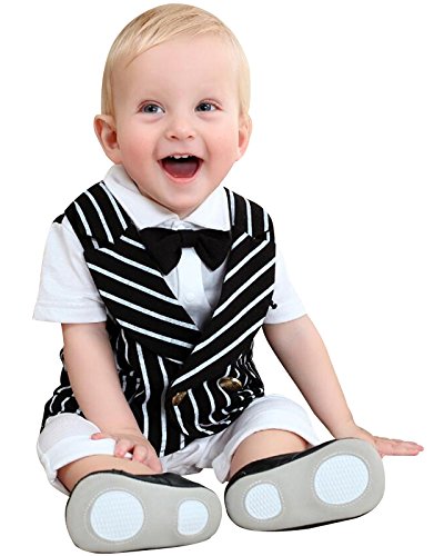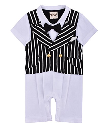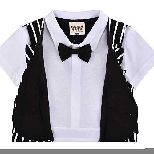 ZOEREA(ゾエレア) ベビーロンパース男の子 フォーマル洋服 ネクタイ 1セット カバーオール半袖 赤ちゃんフォーマ ル服 出産祝い 七五三 誕生日 写真 撮影 記念日 カバーオール 三ヶ月から十八ヶ月適用 ストライプ ブラック