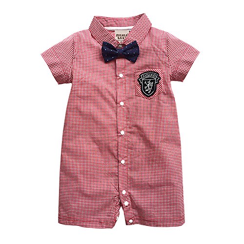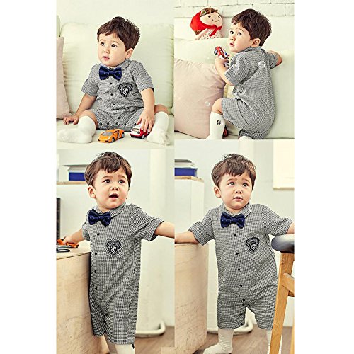 ZOEREA(ゾエレア) ベビー服 男の子 ロンパース カバーオール 半袖 子供服 フォーマル カジュアル ネクタイ付き チェック柄 結婚式 誕生日 入園式 卒業式 写真 プレゼント 発表会 イベント 夏