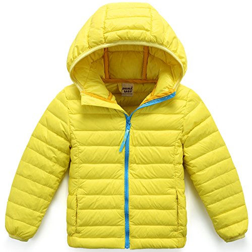 ZOEREA(ゾエレア) 子供ダウンジャケット ベビー綿コート フード付き 長袖パーカー 軽量ダウン 男の子用 女の子用 キッズジャケット 誕生日 秋冬 防寒 通学 綿服 ジャンパーキッズ イエロー 140 [並行輸入品]