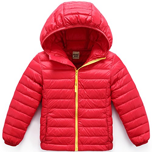 ZOEREA(ゾエレア) 子供ダウンジャケット ベビー綿コート フード付き 長袖パーカー 軽量ダウン 男の子用 女の子用 キッズジャケット 誕生日 秋冬 防寒 通学 綿服 ジャンパーキッズ レッド 110 [並行輸入品]