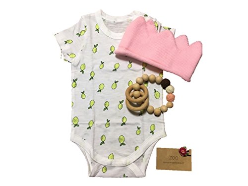 ZOO(ズー)出産祝い 男の子 女の子 木のおもちゃ 王冠 誕生日 プレゼント 0歳 1歳 下着 肌着 ロンパース A (レモン白)