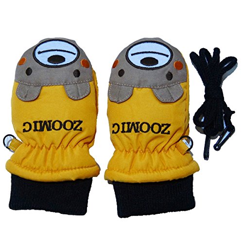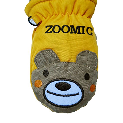 2017年 ZOOMIC 顔アップリケ スノー手袋 防寒衣料 撥水加工 ミトングローブ イエロー◇1-2才寸