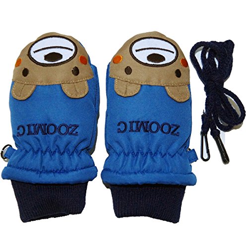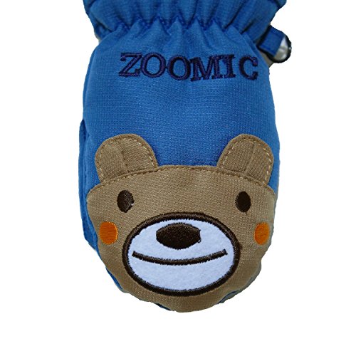 2017年 ZOOMIC 顔アップリケ スノー手袋 防寒衣料 撥水加工 ミトングローブ ブルー◇1-2才寸