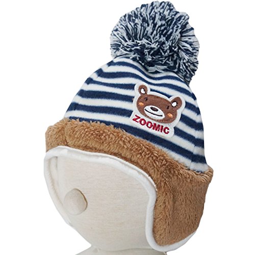 2016年 秋冬 ZOOMIC ズーミック ボーダーフリース 耳あて付き キャップ 帽子 ネイビー◇50-52cm