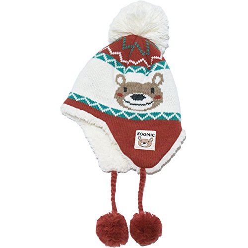 くまさんのお顔が編まれたニット&動きのあるボンボン紐が