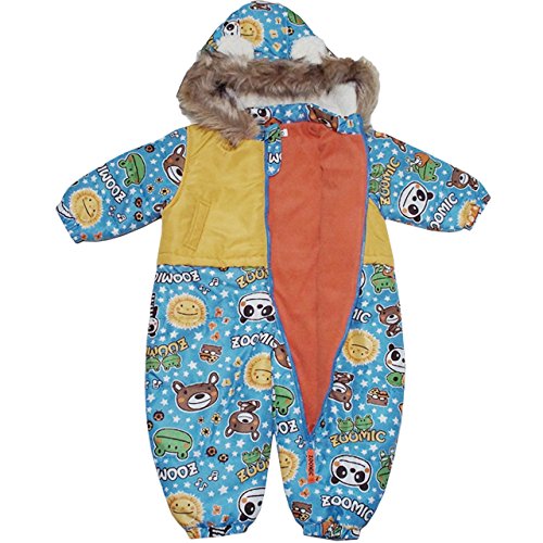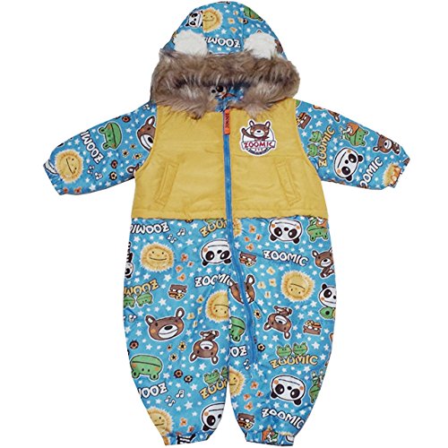 2015年 防寒衣料 撥水加工 ZOOMIC 総柄プリント 中綿ジャンプスーツ 柄:サックス-無地:イエロー◇80cm
